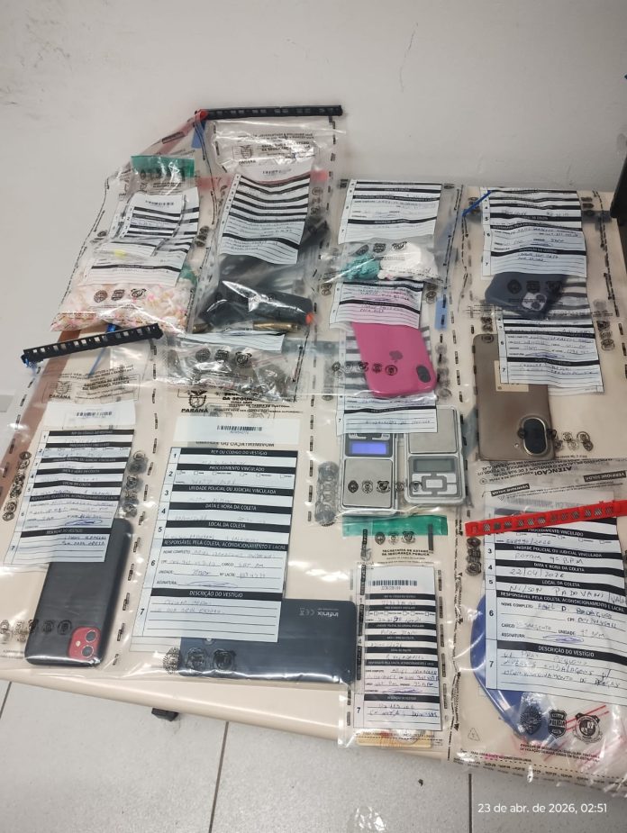 Também foram apreendidos materiais utilizados no preparo e fracionamento das substâncias, como embalagens plásticas, duas balanças de precisão, um prato de vidro com lâmina e a quantia de R$ 115 em dinheiro.