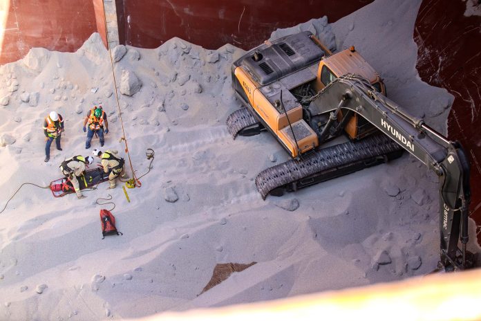 A simulação de um grave acidente no porão de um navio mobilizou equipes de segurança no Porto de Paranaguá. A ação, realizada nesta segunda-feira (29), fez parte de um treinamento inédito de resgate organizado pela Portos do Paraná e contou com o apoio de mais de 40 profissionais do Corpo de Bombeiros, da Rocha Terminais Logísticos, da Rochamar Agência Marítima e do Ogmo (Órgão Gestor de Mão de Obra).