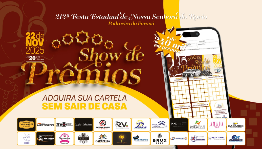 Para facilitar a aquisição das cartelas, o Show de Prêmios da Festa da Padroeira 2025 vem com uma novidade. Além da compra pelo WhatsApp, dos voluntários e dos pontos de venda tradicionais espalhados pela cidade de Paranaguá, agora o fiel pode comprar sua cartela diretamente pela internet. O processo é simples: